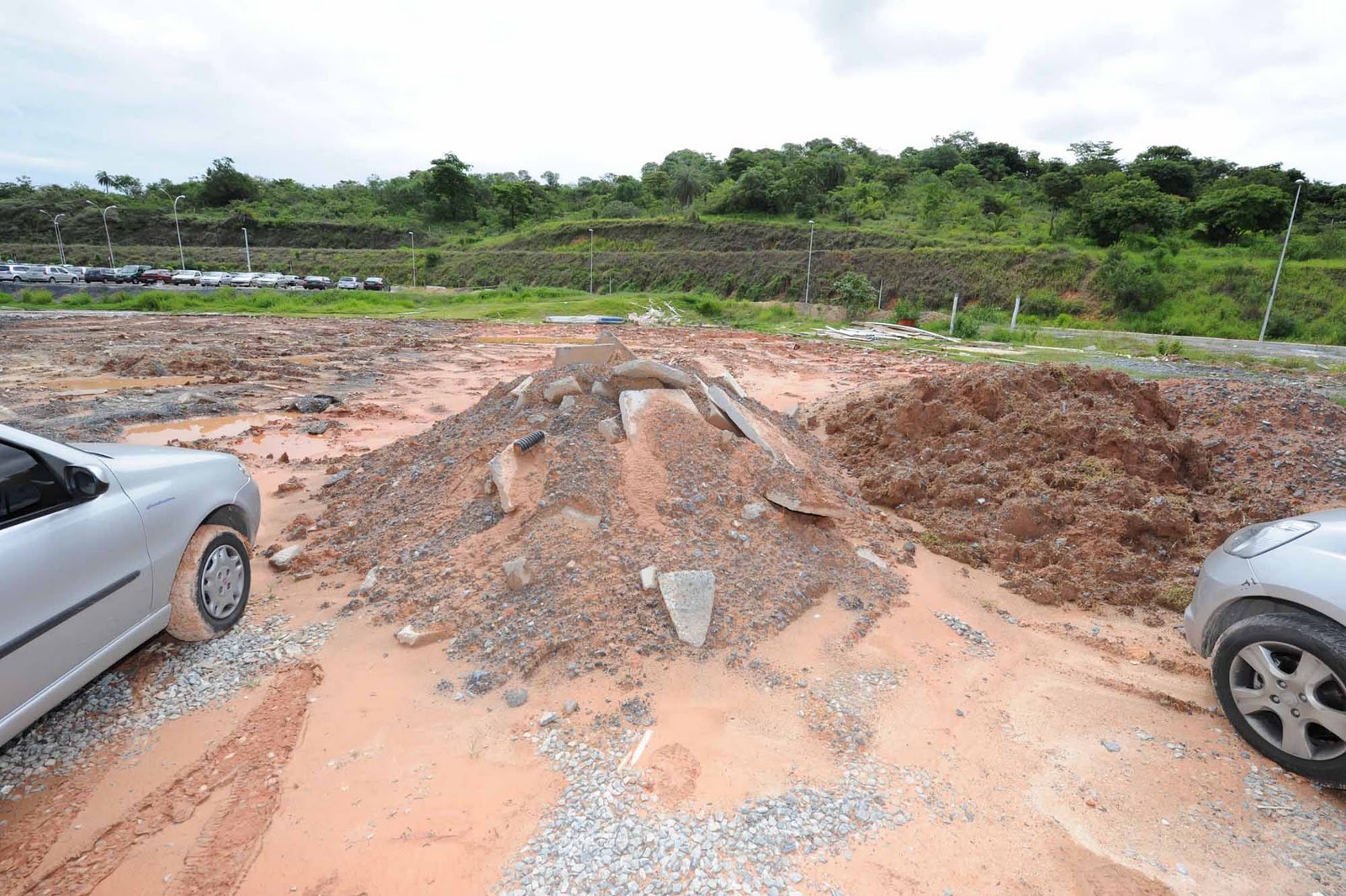 * O local de estacionamento dos carros ainda não foi concluído, faltam faixas, está sujo, faltam árvores e certo trecho ainda é de terra;