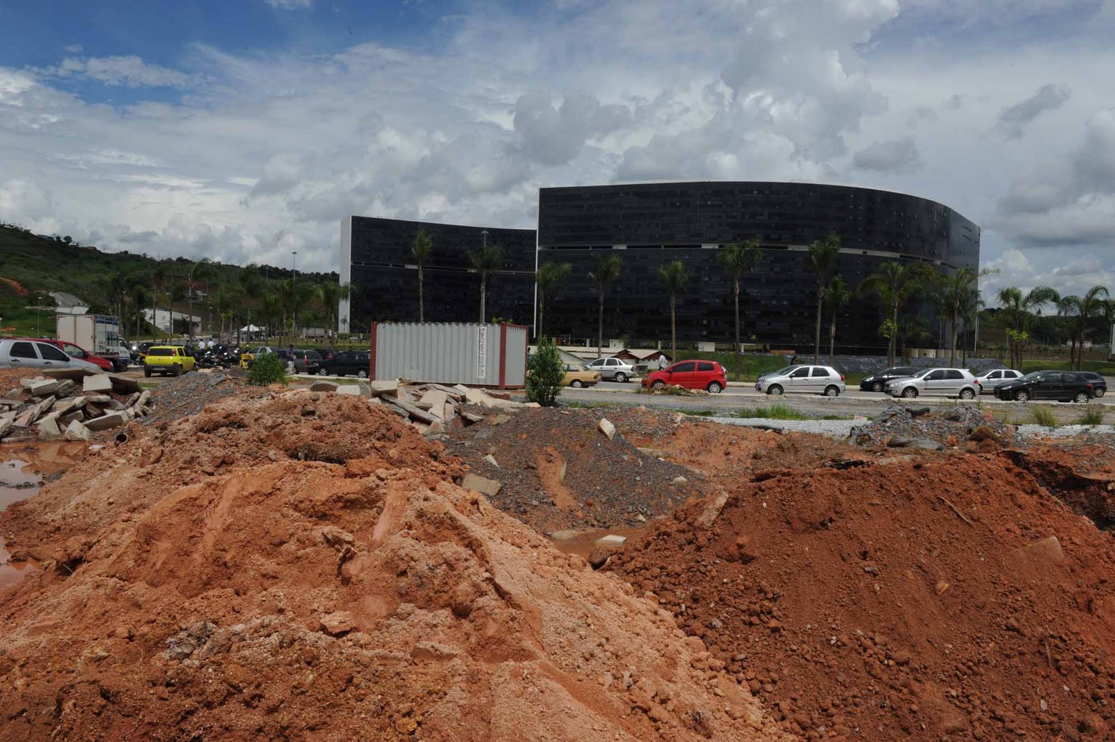 * Além disso, somente agora estão sendo feitos os acessos ao estacionamento, com a colocação de cancelas, para tal, todo o canteiro do estacionamento está sendo escavado para passagem de cabos elétricos;